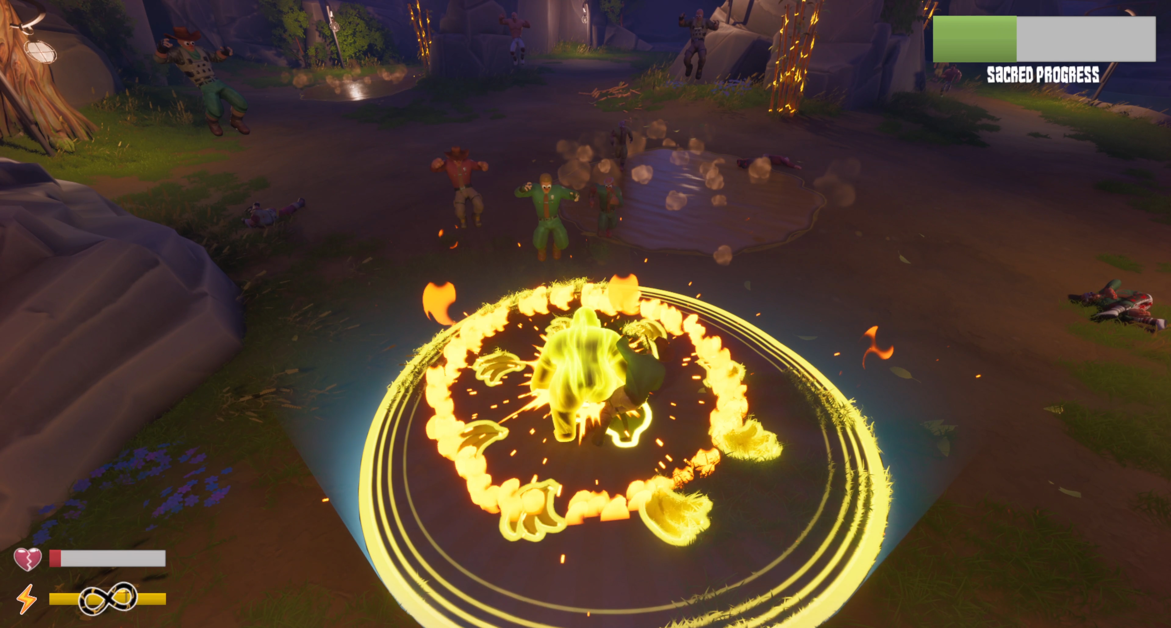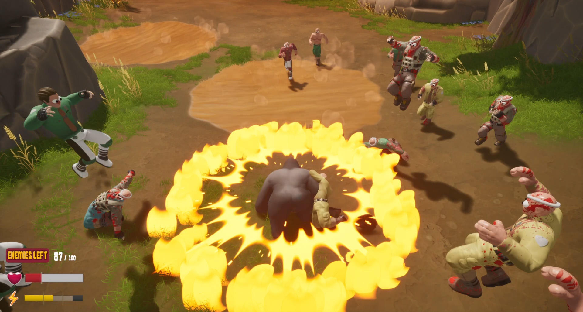 - Grappling enemies
